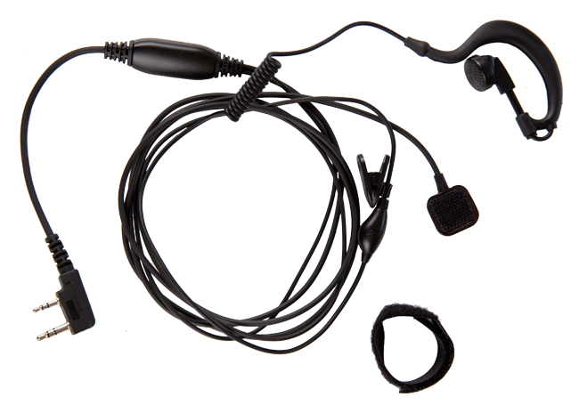 Двухпроводная гарнитура скрытого ношения с заушиной D-стиля, микрофоном и выносной кнопкой PTT - Racio LA-41K2 совместимая со всеми портативными радиостанциями Racio.
