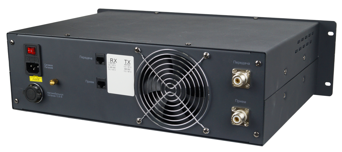 Цифровой стандарт DMR Модификация UHF (400-470 МГц) Выходная мощность передатчика 25 Вт Конфигурируется при подключении к ПК Цифровой и аналоговый режим Напряжение питания 220 В, 50 Гц или 13,8 В Монтаж в стойку 19 дюймов, размер 3U Версия со встроенным дуплексером